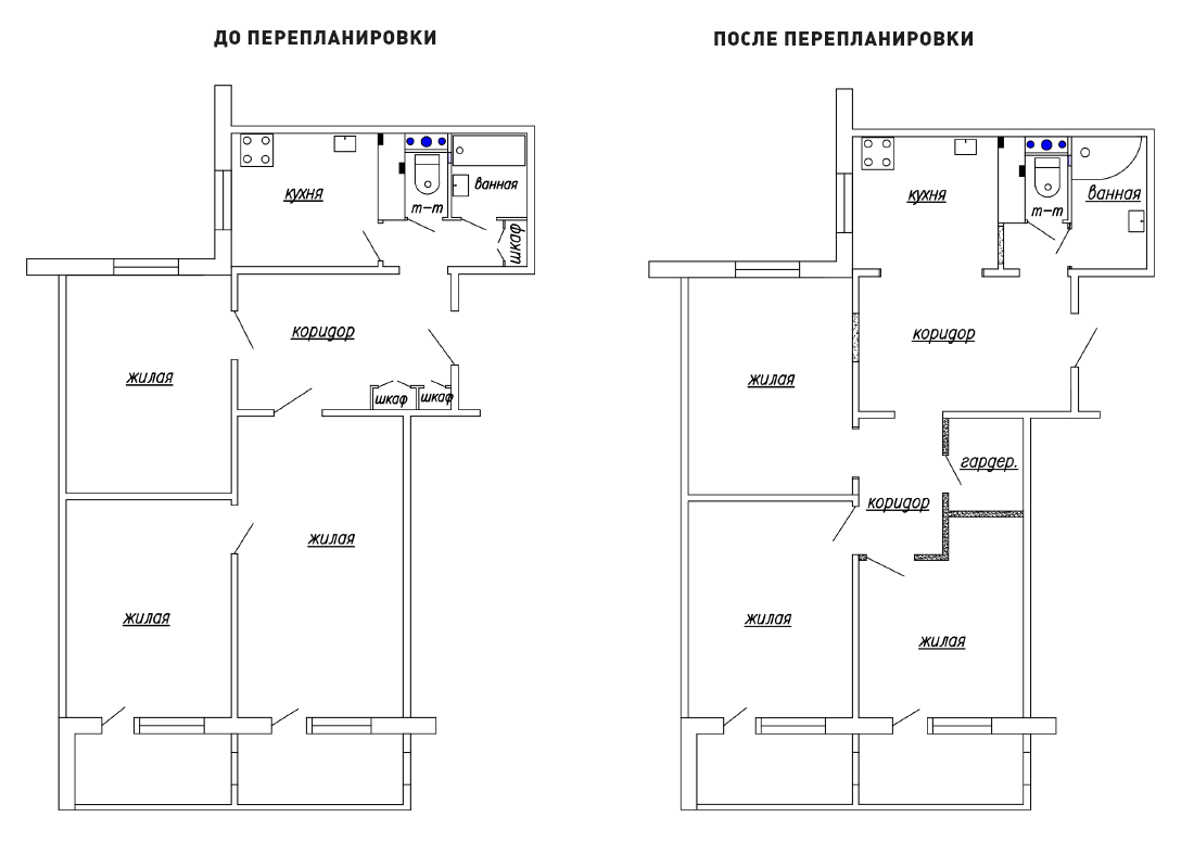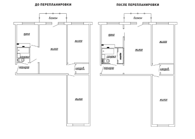 Стандартная планировка квартиры не всегда соответствует требованиям владельцев: кого-то не устраивает маленькая кухня, других — совместный санузел, а кто-то хочет увеличить количество комнат.